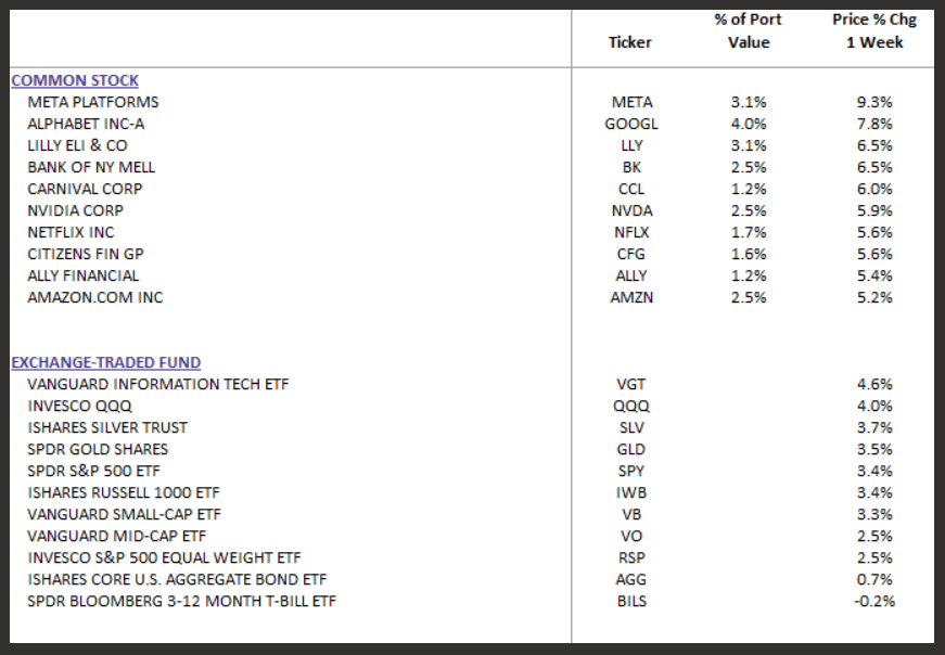 Consistent with this view maintain liquidity, as shown in the top 10 holdings report below, we have increased our allocation from 14% to 18% in short-term Treasuries(BILS).