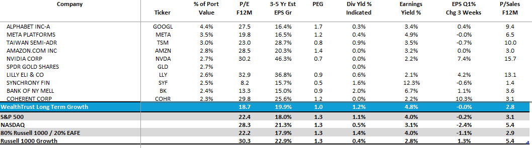DBS Long Term Growth Portfolio Top Ten Holdings and Valuation Statistics: