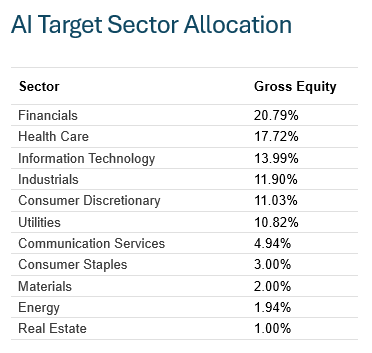 Our AI Target Sector Allocation below is based on AI momentum sector trend analysis and AI news analysis.