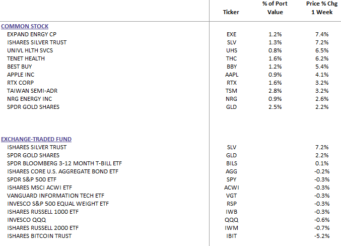 - Diversify Investments: Maintain overweight positions in U.S. large-cap and mid-cap stocks across growth and value sectors (e.g., technology, consumer discretionary, financials, health care) and include U.S. investment-grade bonds for stability, (BILS - three-to-12-month treasuries). Gold & Silver responds well during uncertain times.